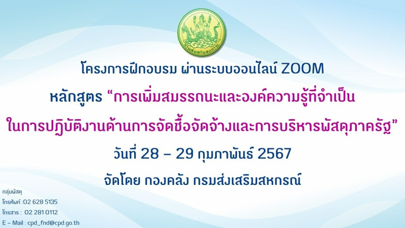 วันที่ 28 – 29 กุมภาพันธ์ 2567 นายสมศักดิ์ ปานดอนไพร สหกรณ์จังหวัดแพร่ มอบหมายให้บุคลากรในสังกัด เข้าร่วมอบรมหลักสูตร “การเพิ่มสมรรถนะและองค์ความรู้ที่จำเป็นในการปฏิบัติงานด้านการจัดซื้อจัดจ้างและการบริการพัสดุภาครัฐ” ผ่านระบบ Zoom Meeting จัดโดยกองคลัง กรมส่งเสริมสหกรณ์ โครงการนี้มีวัตถุประสงค์เพื่อให้ผู้เข้าอบรมมีความรู้ความเข้าใจเกี่ยวกับ บริบทพระราชบัญญัติการจัดซื้อจัดจ้างและการบริหารพัสดุภาครัฐ พ.ศ. 2560 กฎกระทรวง ระเบียบ ประกาศและระเบียบอื่นที่เกี่ยวข้อง และการเตรียมความพร้อมในการจัดซื้อจัดจ้างในปีงบประมาณ พ.ศ. 2567 ซึ่งได้รับเกียรติจาก วิทยากรจากกรมบัญชีกลางมาบรรยายให้ความรู้ โดยมีนายประวัติ แดงบรรจง รองอธิบดีกรมส่งเสริมสหกรณ์เป็นประธานเปิดโครงการฝึกอบรม