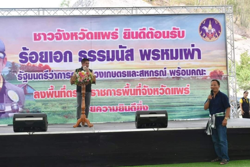 วันที่ 18 พฤษภาคม 2567 ร้อยเอก ธรรมนัส พรหมเผ่า รัฐมนตรีว่าการกระทรวงเกษตรและสหกรณ์ ลงพื้นที่ติดตามความก้าวหน้าโครงการอ่างเก็บน้ำแม่คำมี ตำบลห้วยโรง อำเภอร้องกวาง พร้อมเยี่ยมชมนิทรรศการของหน่วยงานในสังกัดกระทรวงเกษตรและสหกรณ์ โดยมี นายวิศิษฐ์ ศรีสุวรรณ์ อธิบดีกรมส่งเสริมสหกรณ์ นายคีตวุฒิ นับแสง ผู้ตรวจราชการกรม เขตตรวจราชการที่ 15 และ 16 นายสมศักดิ์ ปานดอนไพร สหกรณ์จังหวัดแพร่ ผู้บริหารหน่วยงานในสังกัดกระทรวงเกษตรและสหกรณ์ ร่วมลงพื้นที่ ณ สถานที่ก่อสร้างอ่างเก็บน้ำแม่คำมี ตำบลห้วยโรง อำเภอร้องกวาง จังหวัดแพร่