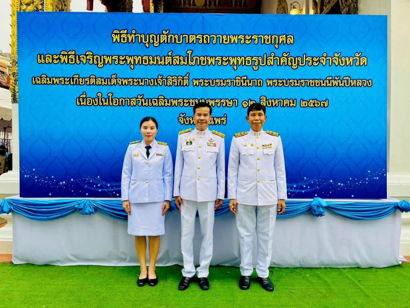 วันที่ 12 สิงหาคม 2567 นายสมศักดิ์ ปานดอนไพร สหกรณ์จังหวัดแพร่ พร้อมด้วย นายสนิท หิรัญพิพัฒน์พงศ์ ผู้อำนวยการกลุ่มจัดตั้งและส่งเสริมสหกณ์ และเจ้าหน้าที่กลุ่มจัดตั้งและส่งเสริมสหกรณ์ เข้าร่วมกิจกรรมพิธีทำบุญตักบาตรถวายพระราชกุศลและพิธีเจริญพระพุทธมนต์สมโภชพระพุทธรูปสำคัญประจำจังหวัด เฉลิมพระเกียรติสมเด็จพระนางเจ้าสิริกิติ์ พระบรมราชินีนาถ พระบรมราชชนนีพันปีหลวง เนื่องในโอกาสวันเฉลิมพระชนมพรรษา 12 สิงหาคม 2567 โดยมีนายชุติเดช มีจันทร์ ผู้ว่าราชการจังหวัดแพร่ เป็นประธานในพิธี ณ พระอุโบสถวัดพระบาทมิ่งเมืองวรวิหาร ต.ในเวียง อ.เมือง จ.แพร่
