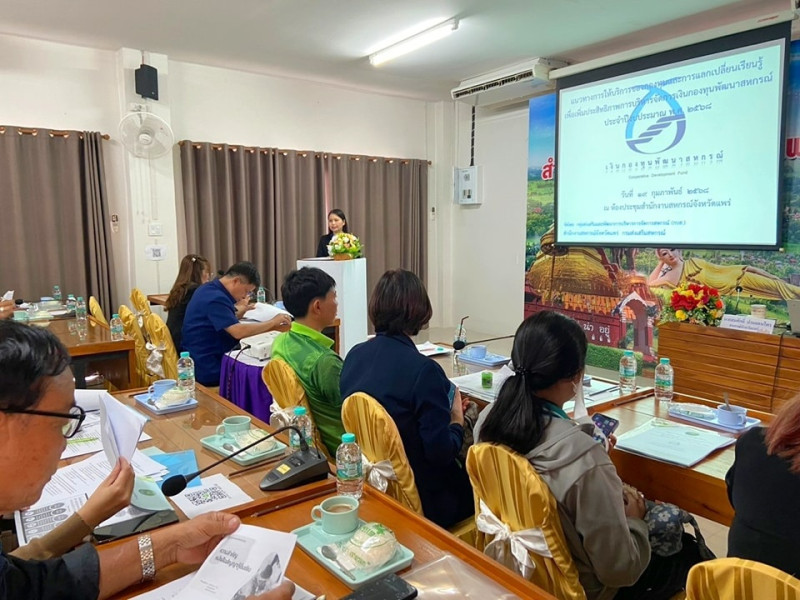 วันที่ 19 กุมภาพันธ์ 2568 นายสมศักดิ์ ปานดอนไพร สหกรณ์จังหวัดแพร่ มอบหมายให้กลุ่มส่งเสริมและพัฒนาการบริหารการจัดการสหกรณ์ จัดโครงการประชุมเชิงปฏิบัติการ "แนวทางการให้บริการของกองทุนและแลกเปลี่ยนเรียนรู้เพื่อเพิ่มประสิทธิภาพการบริหารจัดการเงินกองทุนพัฒนาสหกรณ์ ประจำปีงบประมาณ พ.ศ. 2568” โดยมีนายสุรสิทธิ์ ใจตา ผู้อำนวยการกลุ่มส่งเสริมและพัฒนาการบริหารการจัดการสหกรณ์ พร้อมด้วยทีมวิทยากรบรรยายให้ความรู้เกี่ยวกับแนวทางการให้บริการ หลักเกณฑ์การกู้เงิน แลกเปลี่ยนเรียนรู้ ฝึกปฏิบัติการจัดทำเอกสารการจัดชั้นลูกหนี้ การจัดทำแผนงาน/โครงการขอกู้เงิน เพื่อเสริมสร้างความรู้ ความเข้าใจและเพิ่มประสิทธิภาพในการบริหารจัดการเงินกองทุนพัฒนาสหกรณ์ให้แก่สหกรณ์ในจังหวัดแพร่และเจ้าหน้าที่กลุ่มส่งเสริมสหกรณ์ ณ ห้องประชุมสำนักงานสหกรณ์จังหวัดแพร่ ตำบลทุ่งโฮ้ง อำเภอเมืองแพร่ จังหวัดแพร่