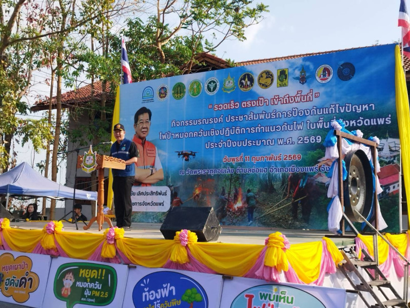 วันพุธที่ 11 กุมภาพันธ์ 2569 เวลา 08.00 น. นายสมศักดิ์ ปานดอนไพร สหกรณ์จังหวัดแพร่ เข้าร่วมกิจกรรมรณรงค์ป้องกันปัญหาไฟป่าและหมอกควันเชิงปฏิบัติการในพื้นที่จังหวัดแพร่ ประจำปีงบประมาณ พ.ศ. 2569 เพื่อแก้ไขปัญหาไฟป่า หมอกควันและฝุ่นละอองขนาดเล็ก PM2.5 ณ วัดพระธาตุดอยเล็ง ตำบลช่อแฮ อำเภอเมืองแพร่ จังหวัดแพร่ โดยมีนายสมชัย เลิศประสิทธิพันธ์ ผู้ว่าราชการจังหวัดแพร่ เป็นประธานฯ