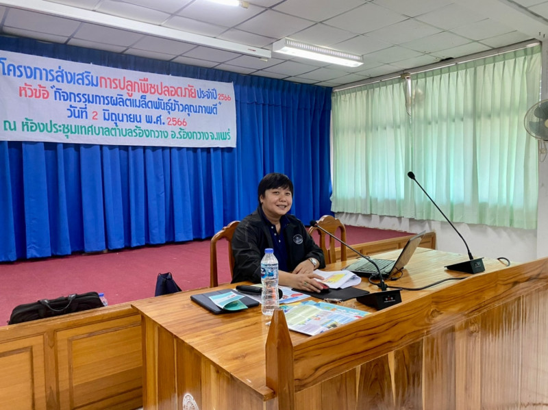 วันที่ 2 มิถุนายน 2566 นายสมศักดิ์ ปานดอนไพร สหกรณ์จังหวัดแพร่ มอบหมายให้ นางสาววัชราภรณ์ เกิดโต นักวิชาการสหกรณ์ปฏิบัติการ และนางสาวชลลัดดา ธรรมมา นักวิชาการมาตรฐานสินค้า เป็นวิทยากรบรรยายให้ความรู้เรื่องการรวมกลุ่มผลิต และการหาแหล่งเงินทุนเชื่อมโยงตลาดข้าว ตามโครงการส่งเสริมการปลูกพืชปลอดภัย จัดโดยเทศบาลตำบลร้องกวาง เพื่อให้ความรู้แก่เกษตรกรผู้ปลูกข้าวในพื้นที่อำเภอร้องกวาง