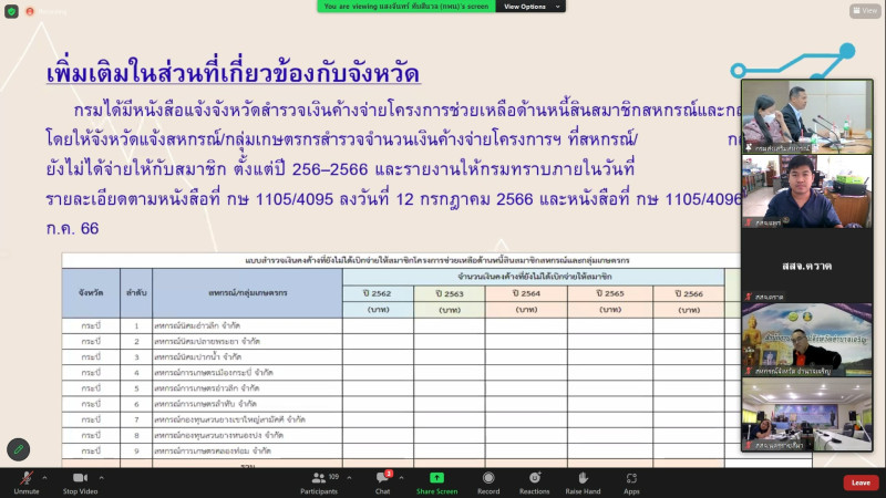 วันที่ 13 กรกฎาคม 2566 นายสมศักดิ์ ปานดอนไพร สหกรณ์จังหวัดแพร่ มอบหมายให้นางสาวนัฐรียา ทรัพย์สุข ผู้อำนวยการกลุ่มส่งเสริมและพัฒนาการบริหารการจัดการสหกรณ์ และนายวงศธร มะลิ นักวิชาการสหกรณ์ปฏิบัติการ เข้าร่วมประชุมชี้แจงแนวทางการดำเนินงานโครงการช่วยเหลือด้านหนี้สินสมาชิกสหกรณ์และกลุ่มเกษตรกร จากกรมส่งเสริมสหกรณ์ผ่านระบบออนไลน์ Zoom Meeting ณ สำนักงานสหกรณ์จังหวัดแพร่